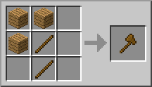 | Топор | Палки,железо или золото или дерево или алмазы или булыжник | ![]() | Используется для рубки деревьев. |