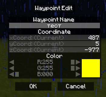 4.После нажатия на кнопку "Add" откроется вот такое окно.Где можно указать имя,координаты и цвет(Для настройки надо немного знать систему цветов RGB,ну или делать цвет на бум)